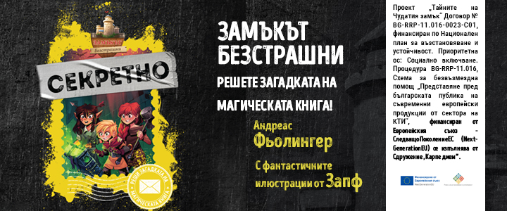 Серия от събития за деца и родители в София, Плевен и Благоевград се предвиждат в рамките на проект „Тайните на чудатия замък”. Те са част от кампанията за представяне на книгата „Замъкът Безстрашни. Секретно” на немския писател Андреас Фьолингер, насочена към детската аудитория. Тя се издава за първи път в България и съдържа вълнуващи загадки и ребуси, вплетени в интересна история за четирима приятели, които изследват тайните на замъка „Безстрашни”. Книгата насърчава критичното мислене на подрастващите и развитието на аналитични умения чрез игра. Към нея, специално за българските читатели са създадени и мистериозни аудио истории, достъпни с QR код, вграден в книгата.  Включете се в незабравимо изживяване за родители и деца и станете част от отбора на Зиги!